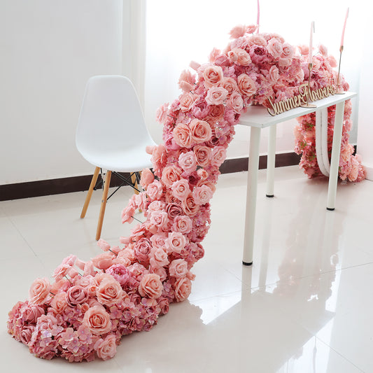 FR-002-40 Custom Artificial Silk Pink Flower Runner Rose Floor Table Flower Runner For Wedding Arrangement Decoration